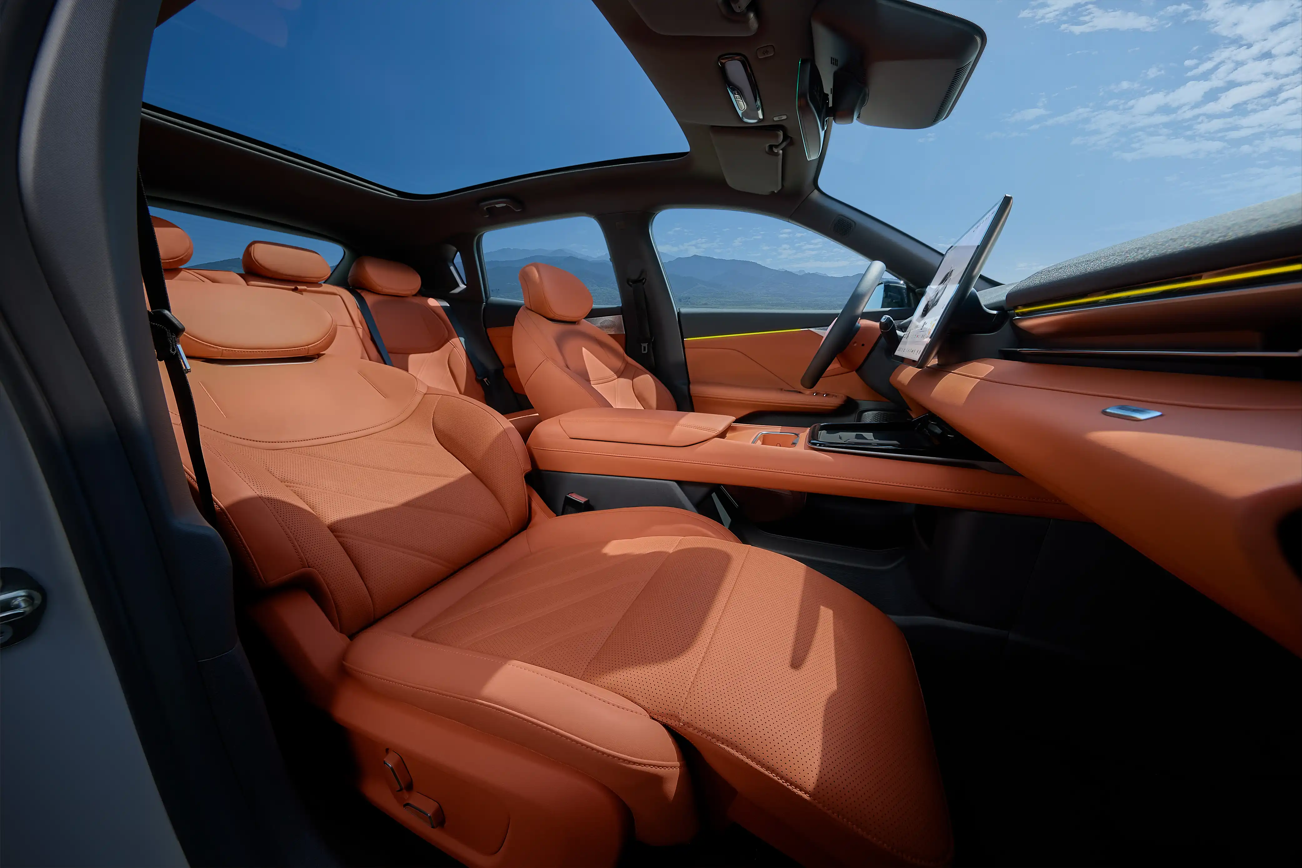 წინა სავარძლების გათბობისა და გაგრილების ფუნქცია ნებისმიერ სეზონზე კომფორტულ გარემოს უზრუნველყოფს. პანორამული მინის ჭერი მზის დამცავით ინტერიერს ბუნებრივი სინათლით ავსებს და სალონში უფრო ფართო და ნათელ სივრცეს ქმნის. 14 დინამიკიანი Hi-Fi აუდიო სისტემა კი გამორჩეულ ხმის გამოცდილებას უზრუნველყოფს და ყოველ მგზავრობას განსაკუთრებულ ატმოსფეროს მატებს.