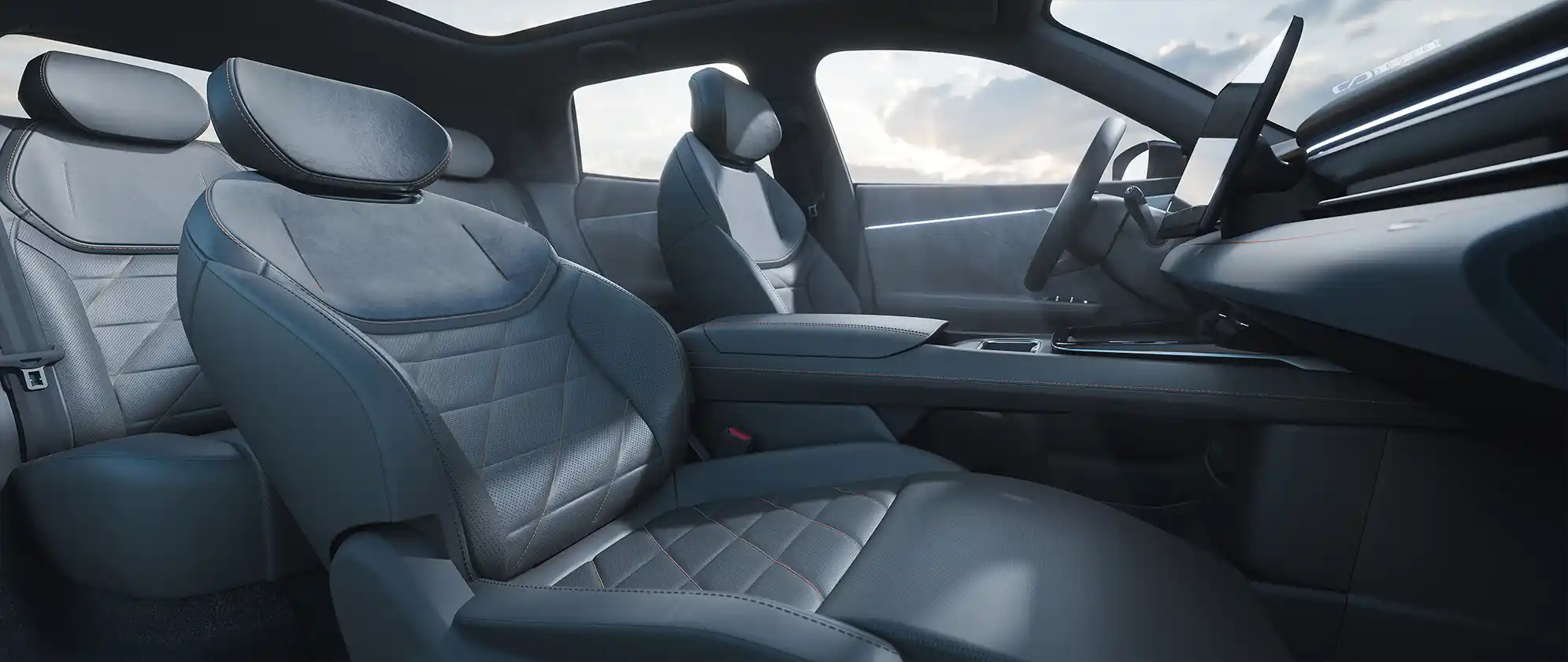 At the heart of the cockpit is a 15.4-inch 2.5K touchscreen, which can be individually tilted by 15 degrees to perfectly suit the driver or passenger and reduce glare. A powerful Qualcomm 8155 chip ensures lightning-fast system response, instantly executing your commands. For added convenience, a 50-watt fast-charging pad enables wireless charging, keeping your smartphone powered throughout the journey. So you can enjoy your drive without worry.